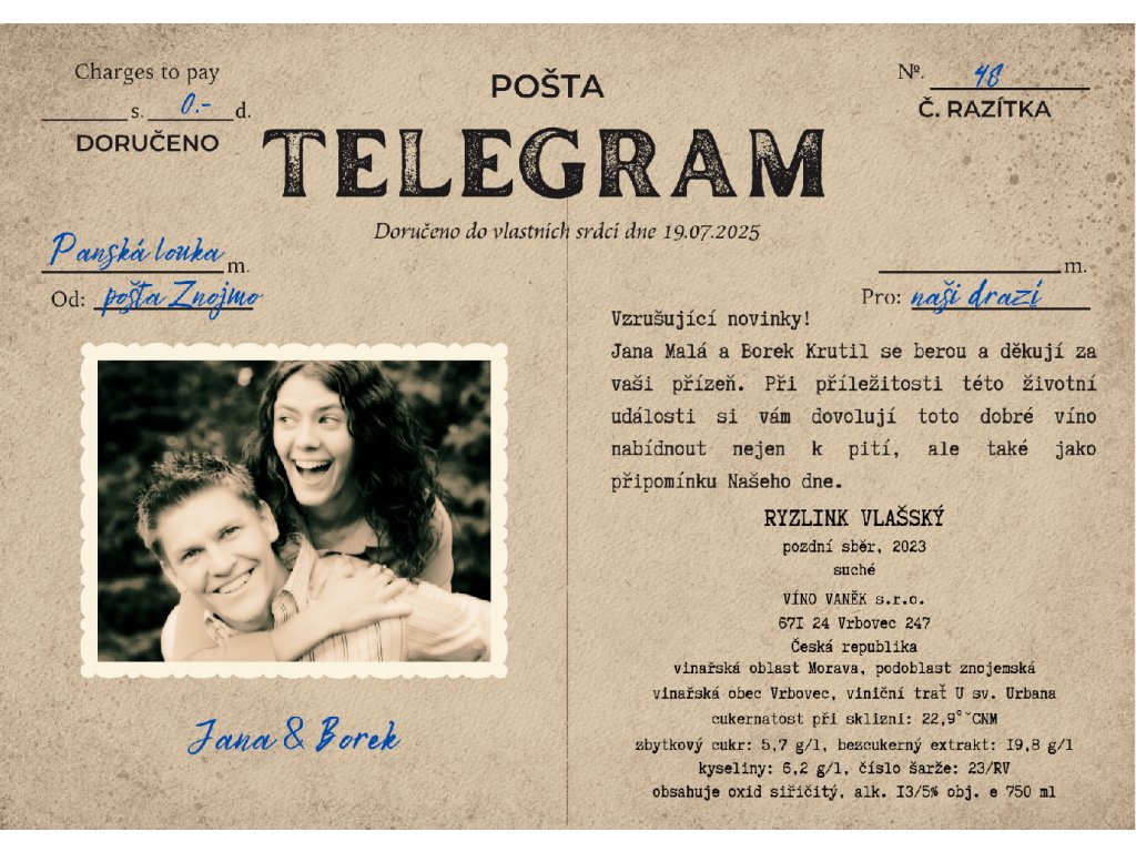 | Kategorie: | Svatební vína s vlastní etiketou - zařídíme vše od A do Z |