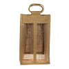 Jutová taška s okénkem a dřevěnými uchy na 2 láhve