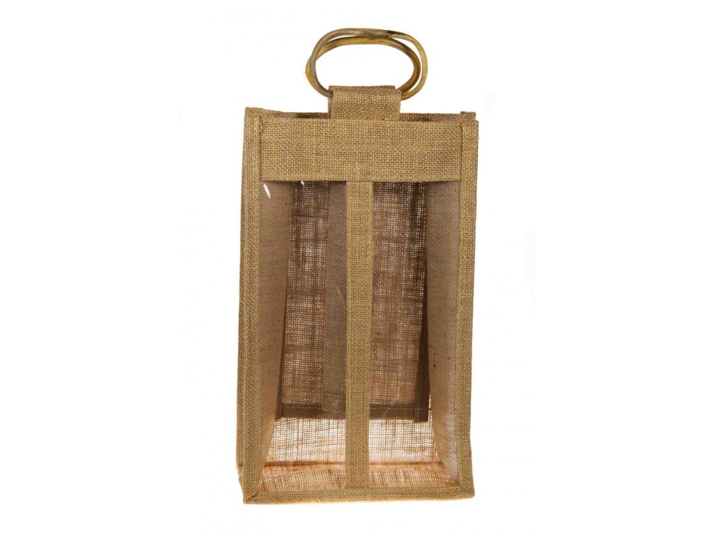 Jutová taška s okénkem a dřevěnými uchy na 2 láhve