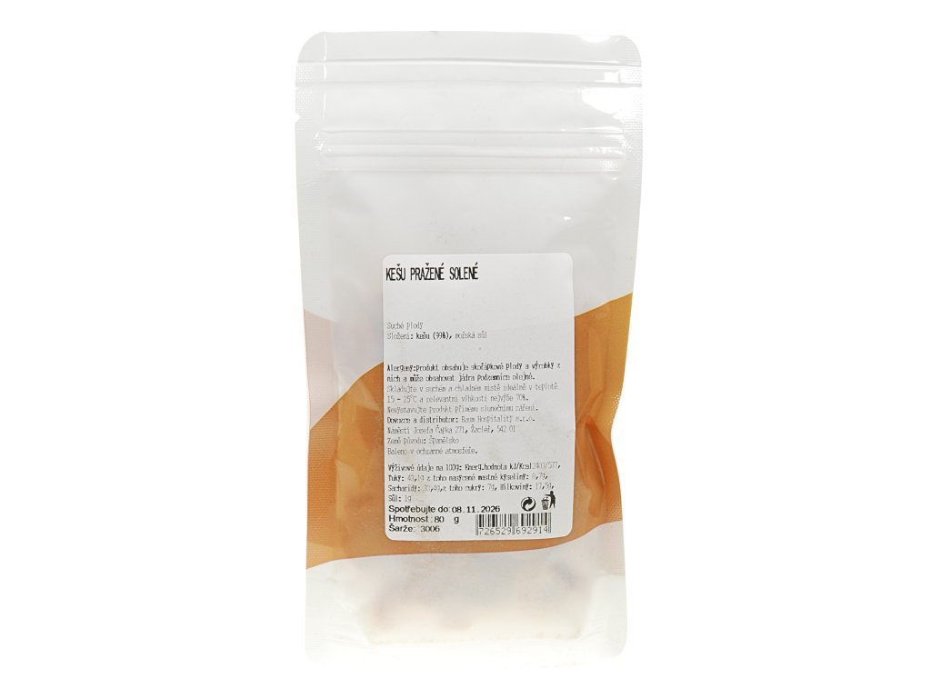 Pražené solené kešu ořechy představují výbornou a zdravou pochoutku, která skvěle doplní lehké saláty, sýrové mísy, tapas, různé předkrmy nebo může posloužit jako kvalitní snack k vínu či pivu. Díky jemné mořské soli vyniká jejich přirozená máslová chuť, která je oblíbená v moderní gastronomii i zdravém mlsání.