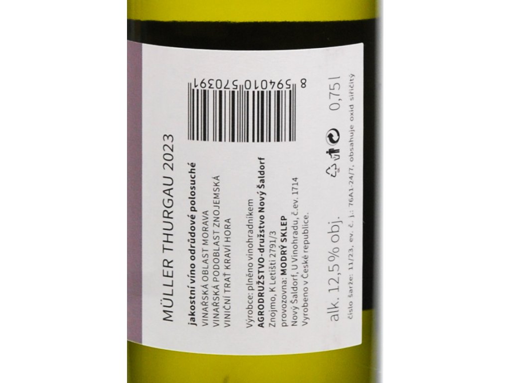 Müller Thurgau, jakostní, polosuché víno, 2023 - Vinné sklepy Znojmo