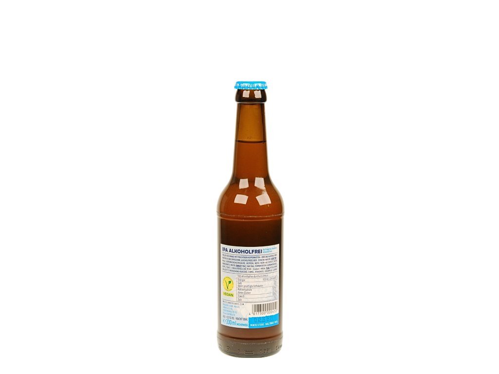 Pivo typu IPA s ovocnými a chmelovými tóny bez alkoholu. Láhev je vratná, záloha 3 Kč.