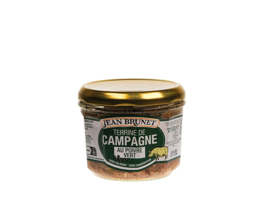 Složení: vepřový tuk, vepřová játra (30 %), vepřová krkovička, zelený pepř (2 %), sůl, koření (včetně muškátového oříšku), hořčice. Může obsahovat stopy mléka a sóji.