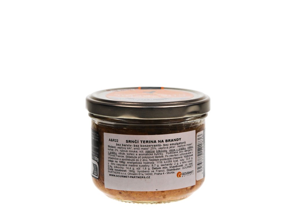 Jemná a lahodná srnčí terina s přídavkem brandy je ideální delikatesou pro milovníky zvěřinových specialit. Skvěle se hodí k čerstvému pečivu, toastům nebo jako součást luxusního předkrmu.
